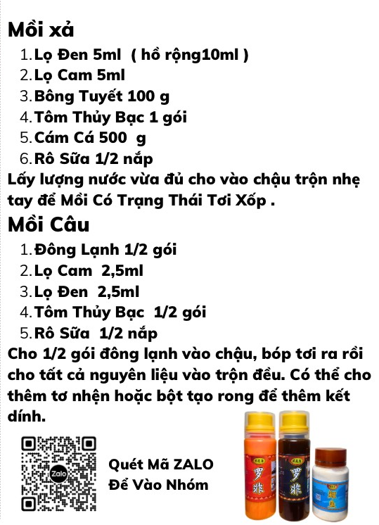 Đặc điểm nổi bật: Combo Xuân Hè chuyên Rô phi tỏa mùi nhanh, đánh ổ gọn, dính ổ tốt. Đã tối ưu cho cả nước trong và nước đục.